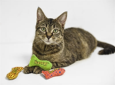 Yeowww jug of stinkies zijn kattenspeeltjes gevuld met 100% biologisch kattenkruid. De stinkies zijn gemaakt van stevig katoen en gekleurd met uitsluitend plantaardige of op soja gebaseerde kleuren. In de pot zitten 51 stinkies in drie verschillende ontwerpen.